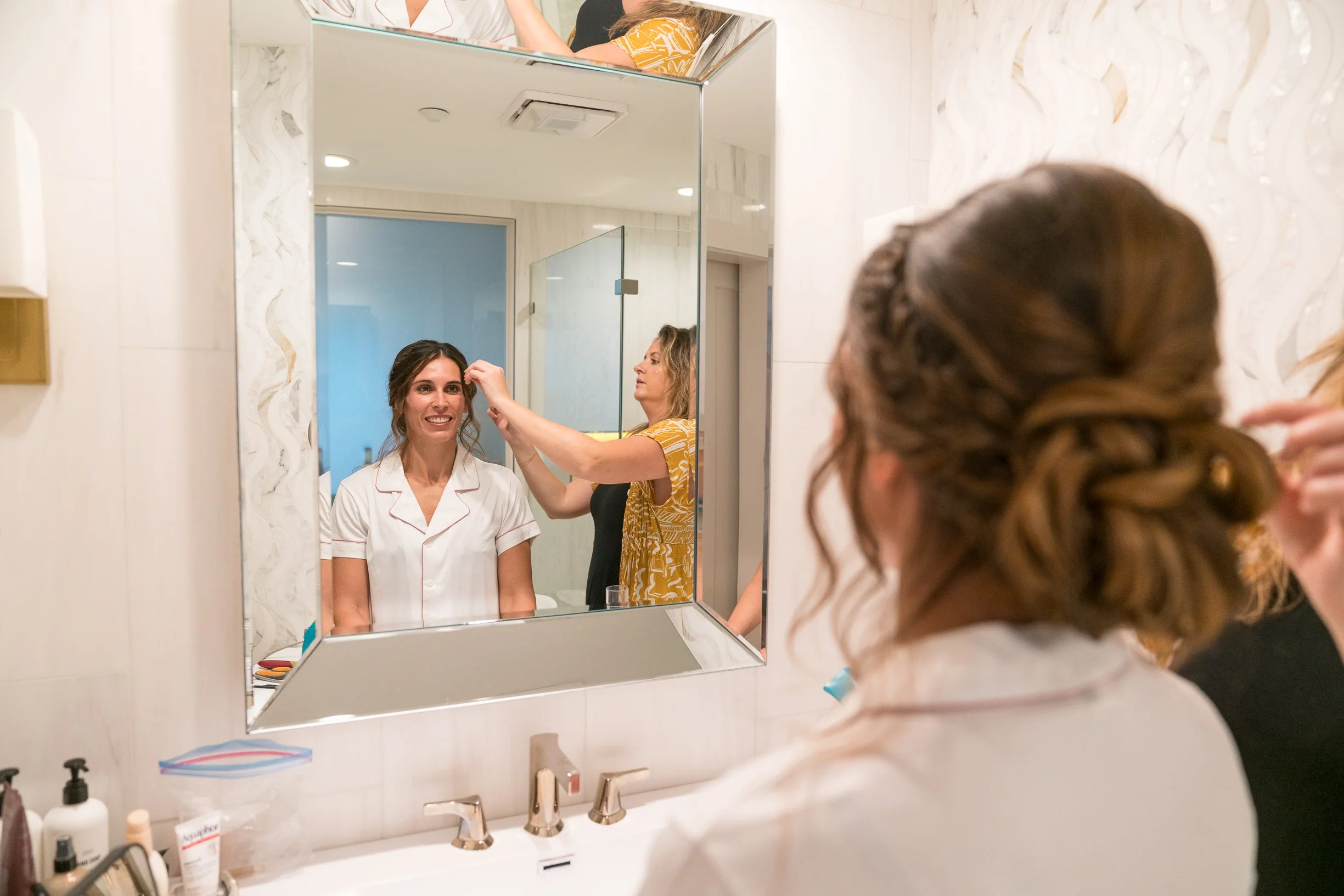I asked her about her vision and what style of photographs she hoped for. On the day of the wedding, we had some rain showers roll through. While it showered outside, the girls were busy laughing, jumping on the bed, fixing our hair, snacking on sushi, and dancing to our favorite songs on full blast!