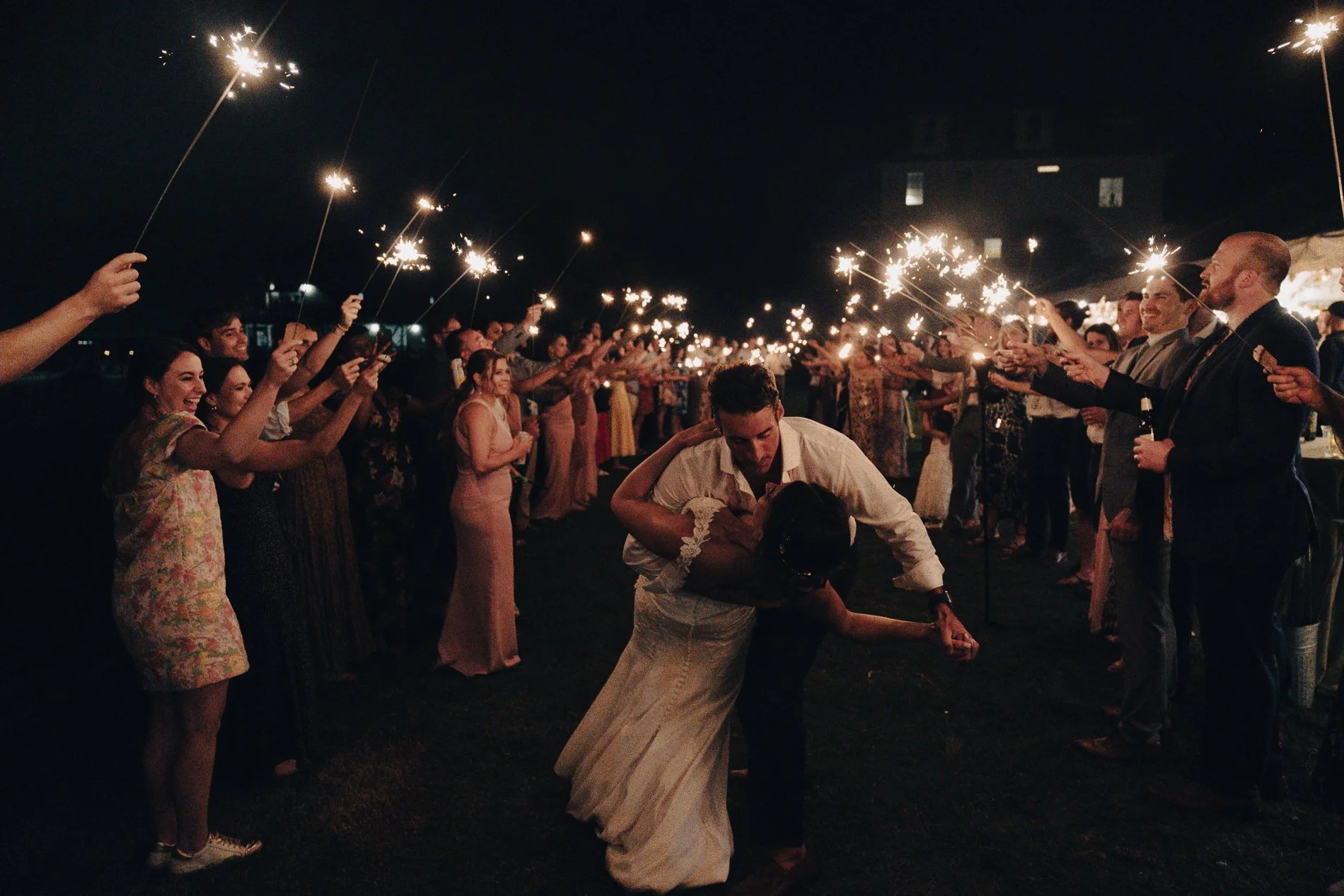 Luckily, the rain passed and we were blessed with a beautiful evening and sunset celebration on the waterβs edge. As night fell, I mentally prepared for the grand sparkler exit. Everything went off without a hitch and I was so pleased to share the final results with my friend!