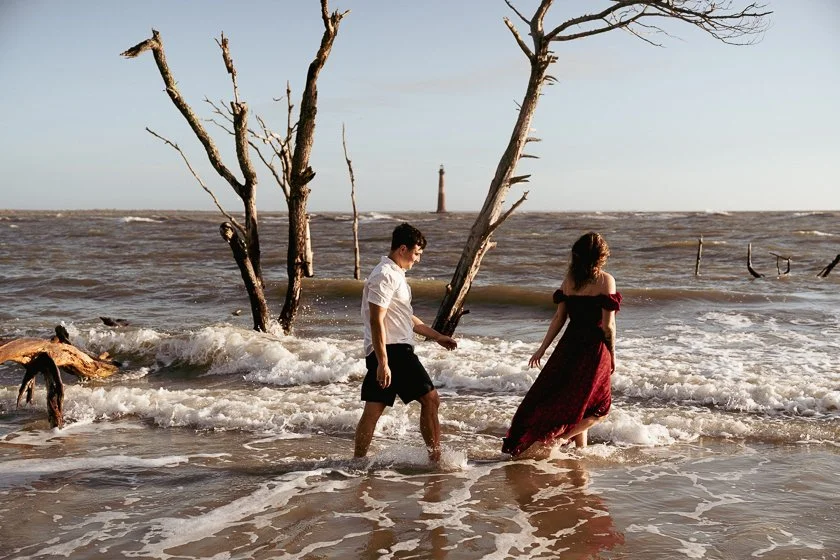 Congratulations to Ellen and Greg on their elopement! Forever grateful to them for choosing me to photograph their love story. They told me they felt free to be themselves with me behind the lens, which meant the world to me. For their portraits, they wanted to capture a mixture of playful yet classic moments. We selected two iconic Charleston locations they frequent: the sandy shores of Folly for a golden, beachy vibe, and the enchanting oaks at Charles Towne Landing to capture the timeless Charleston charm they adore.